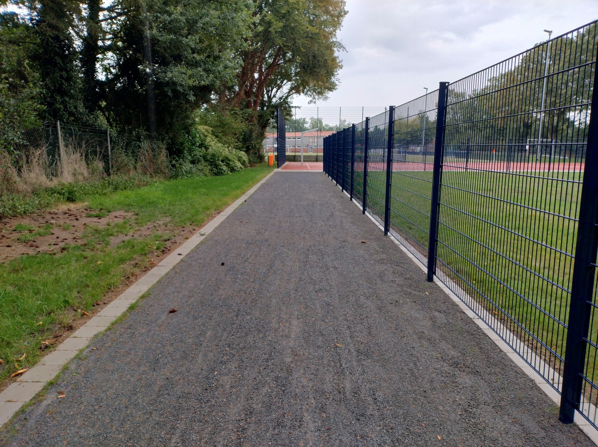 In de zomer van 2025 heeft het bedrijf Werner Lüske uit Haselünne de buitenruimte van sportvereniging "VFL Weiße Elf" in Nordhorn vernieuwd. Vanaf de Euregiostraße tot aan het basketbalveld werd een voetpad aangelegd met een toplaag van KoMex Anthrazit.