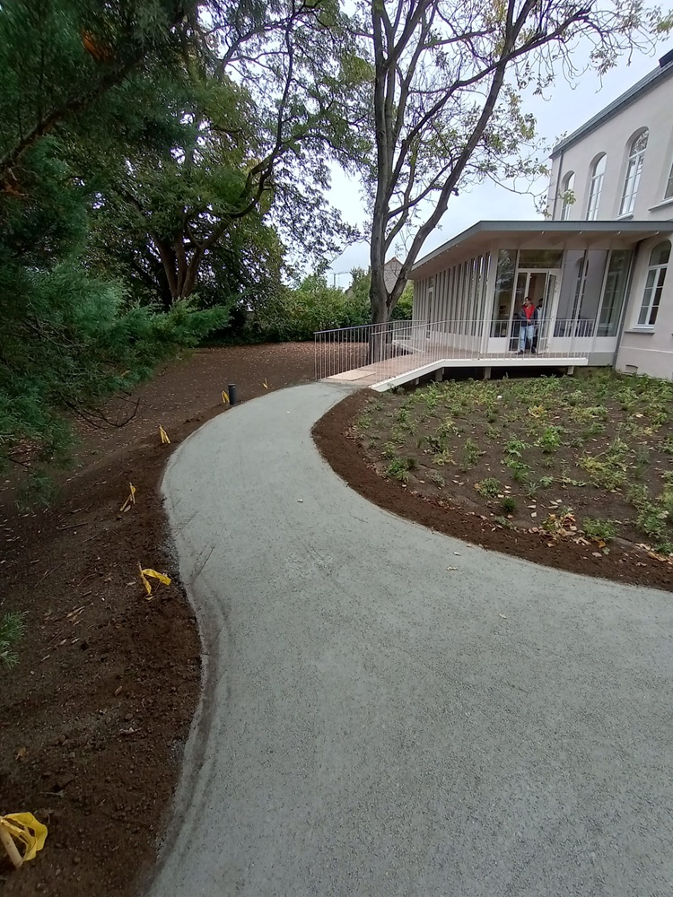 DurEko-mix® is een duurzaam samengesteld halfverhardingsmateriaal op basis van diverse harde steensoorten en bindmiddelen. Dankzij de donkergrijze kleur gaat het pad visueel op in de natuurlijke omgeving. Het product is ontwikkeld volgens het Cradle to Cradle-principe, waarbij hergebruik van materialen centraal staat. Zo draagt DurEko-mix® bij aan milieuvriendelijk en circulair bouwen.