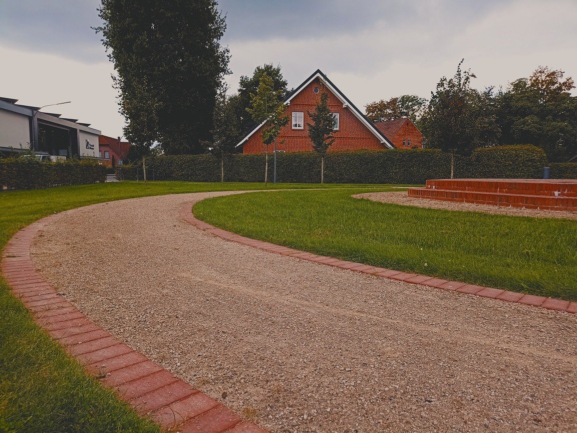 Direct naast huisnummer 4, aan de Bahnhofstraße in Lindern, bevindt zich een klein park met een wandelpad dat een toplaag heeft van KoMex Geel. De gemeente Lindern onderhoudt het park regelmatig.
