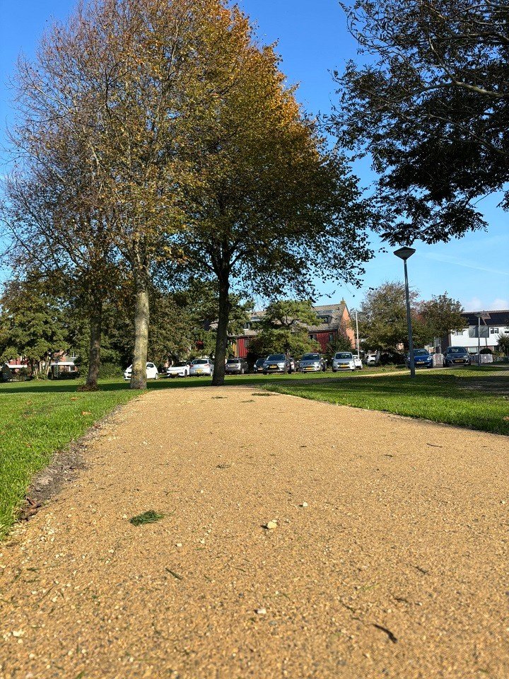 In de wijk Zeeburg in Noordwijkerhout ligt de KoMex gele variant verwerkt. Midden in het groene buurtparkje komt de gele halfverharding prachtig tot zijn recht. De frisse kleur vormt een warm contrast met het weelderige groen eromheen, kinderen kunnen hier heerlijk spelen, een balletje overtrappen of wat dan ook, zo kun je hier ook enkel een wandeling maken om even te ontsnappen van de dagelijkse druktes.